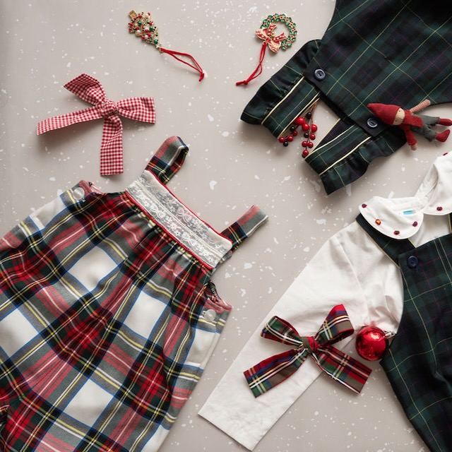 These long dungarees were designed to add even more charm to the festive season. Featuring a classic Christmas tartan pattern and delicate lace details on the front and back, they are a timeless and enchanting piece. The comfortable cut allows freedom of movement, making them perfect for special family moments — the kind you never forget.