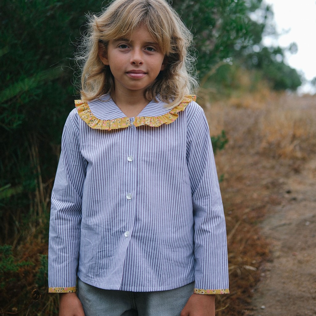 With a classic striped pattern, this shirt gains a special touch with its collar and cuffs in yellow floral fabric. The delicate contrast creates a unique piece full of personality, perfect for winter days with a cheerful and relaxed touch.