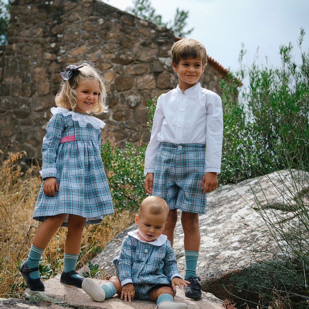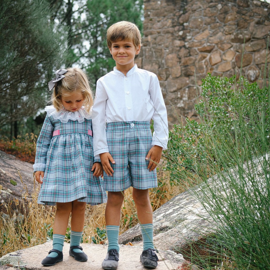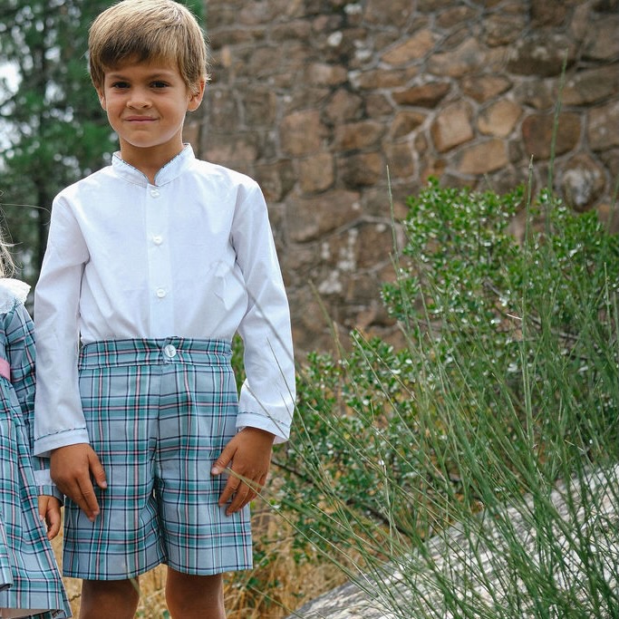 Camisa branca clássica de manga comprida para rapaz, um essencial no armário de qualquer rapaz. Com gola á padre, confere um estilo moderno e elegante, mantendo a versatilidade de uma peça que combina com os calções xadrez.