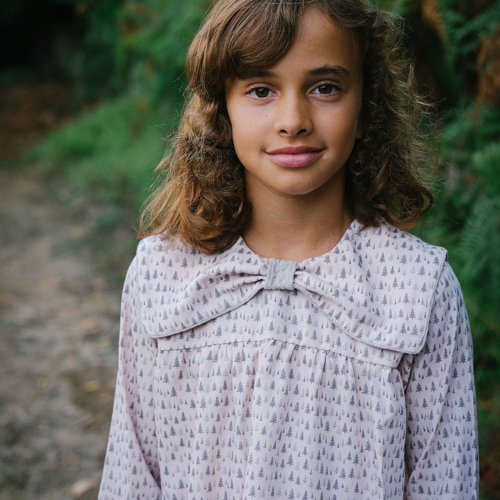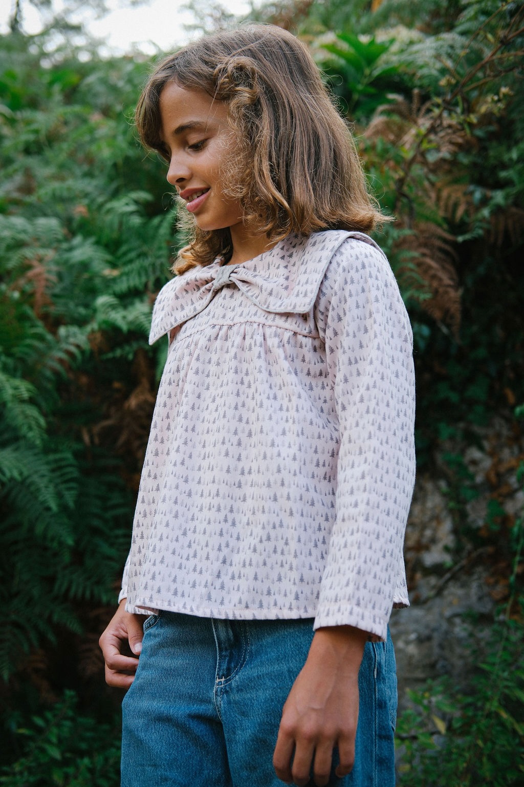 Esta camisa é a escolha perfeita para quem procura um estilo intemporal com um toque especial. Feita em 100% algodão, tem um padrão subtil de pequenas árvores em tons suaves. O detalhe do laço na gola confere um charme único, tornando-a versátil para usar tanto em ocasiões especiais como no dia a dia.