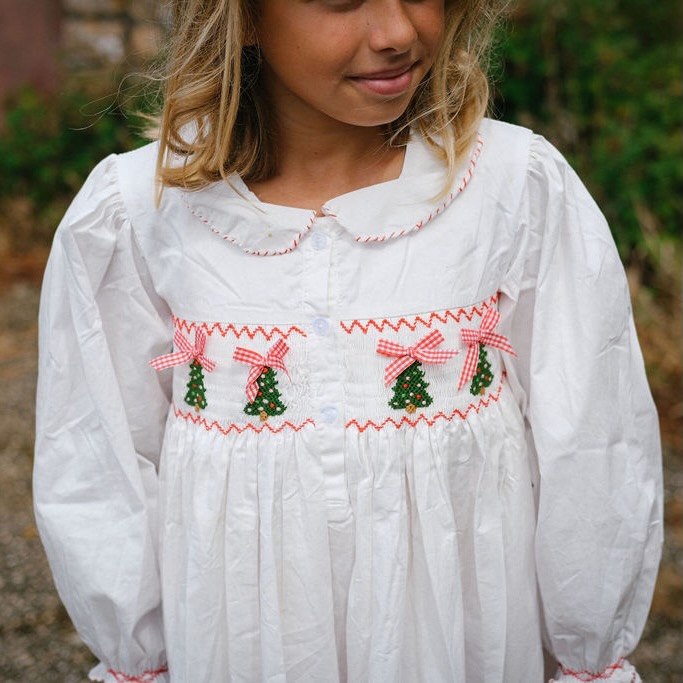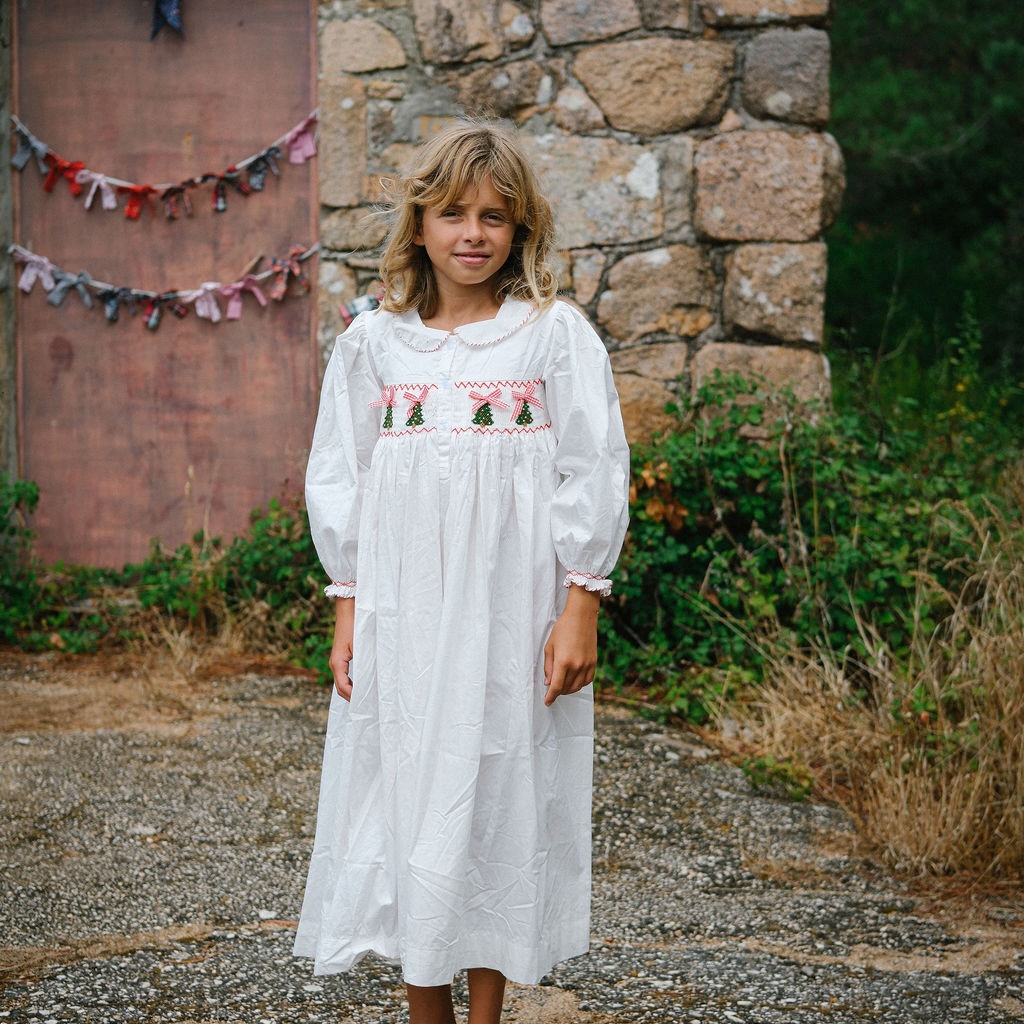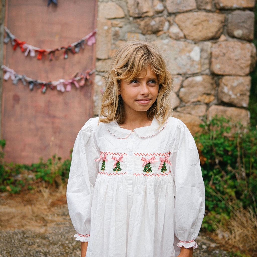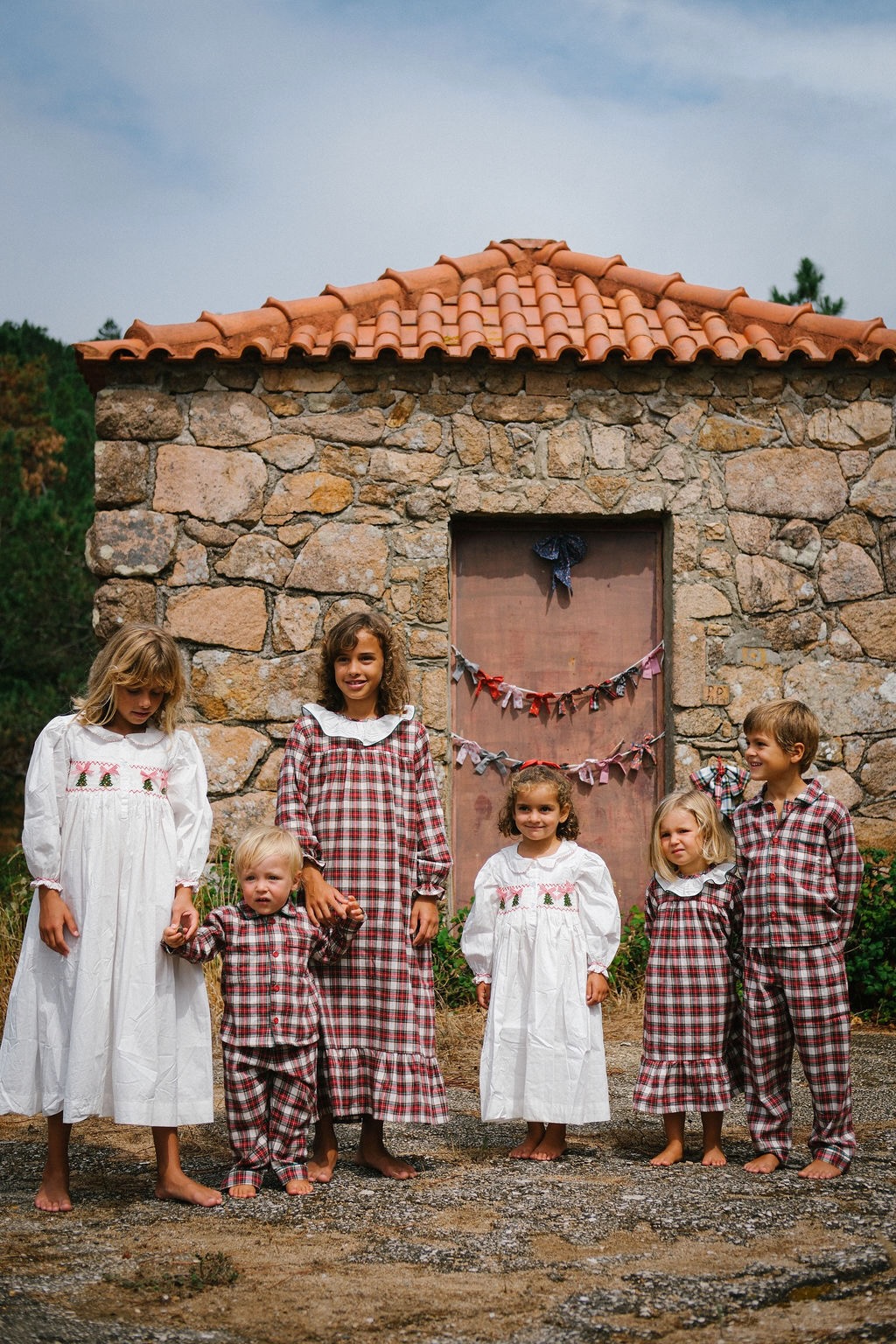 Os smocks delicados no peito, o acabamento bordado nos punhos e gola e o trabalho artesanal tornam-na uma peça única e memorável — perfeita para as noites frias e para as manhãs de Natal em família.