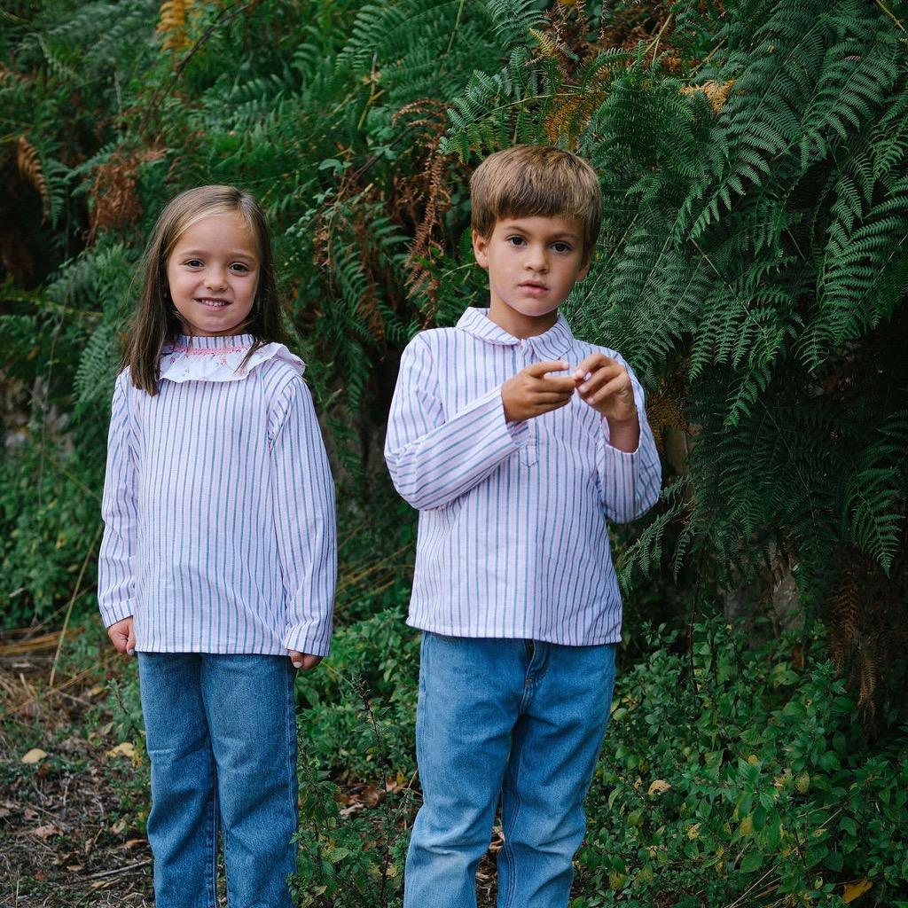 Com um padrão intemporal às riscas em tons suaves de cinzento e cor de rosa, esta camisa é uma peça essencial da coleção de inverno. O corte simples e elegante confere um estilo clássico que resulta tanto em looks mais formais como em momentos do dia a dia.