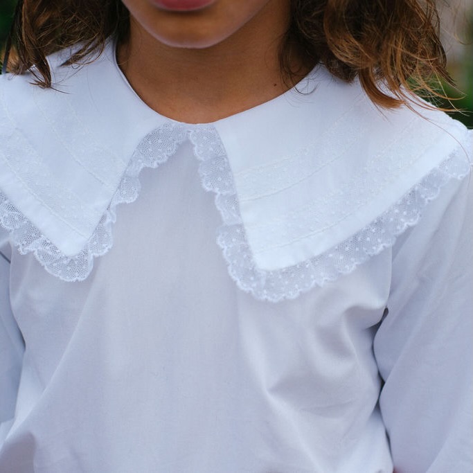 Camisa 100% algodão com gola em renda delicada;
