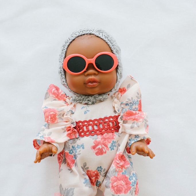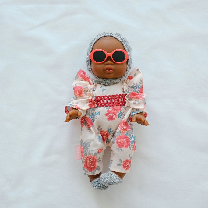 Roupas de boneca totalmente feitas á mão: touca, fofo, sapatos.