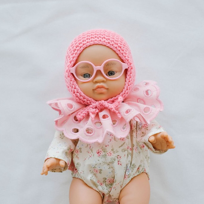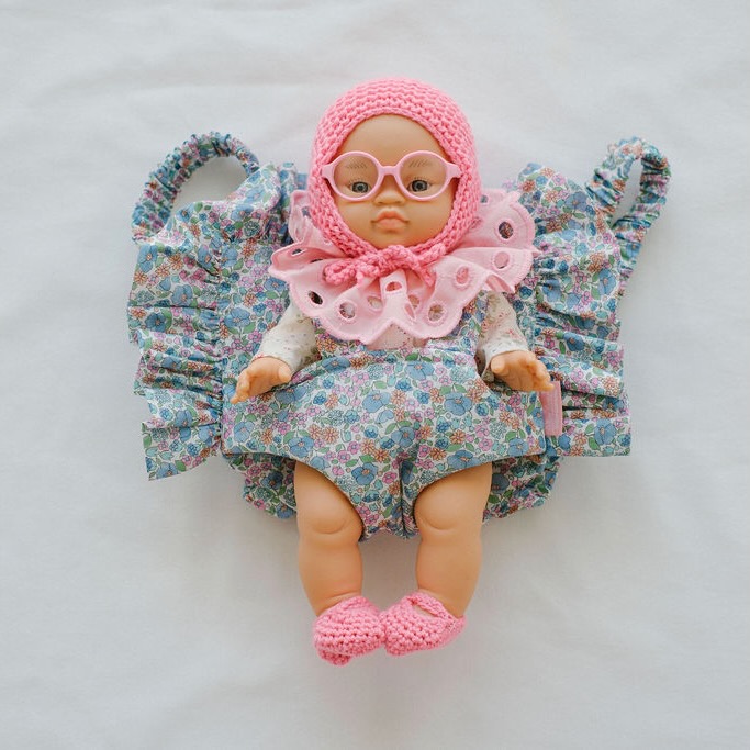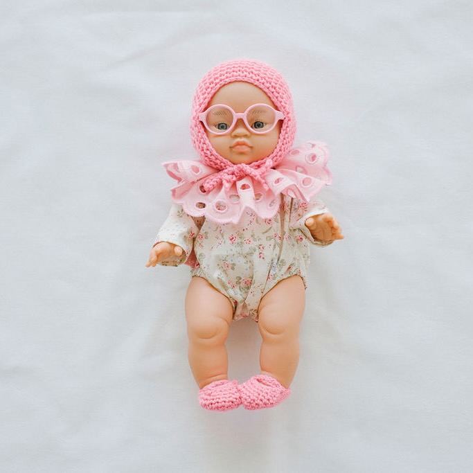 Roupas de boneca totalmente feitas á mão: touca, fofo, sapatos.