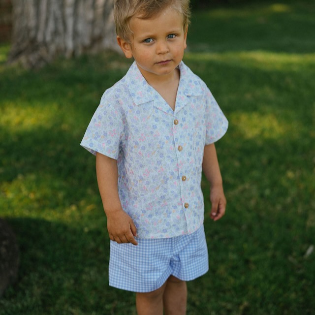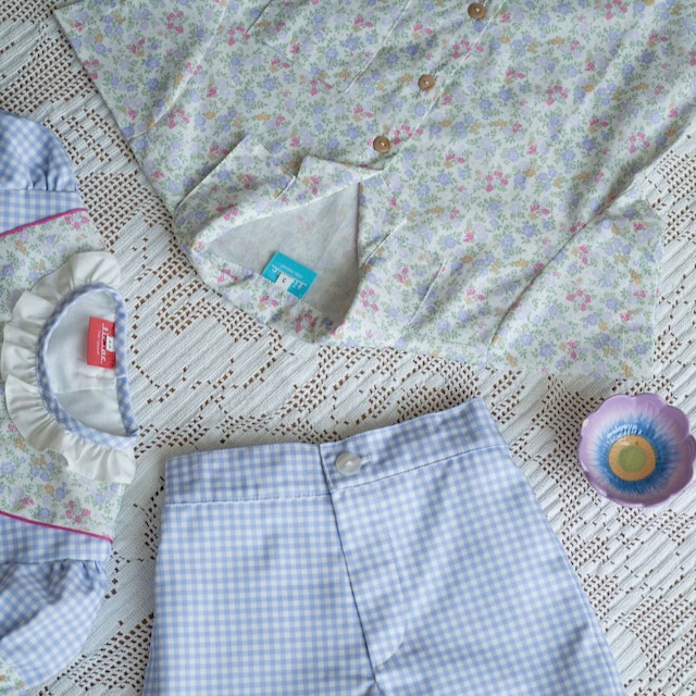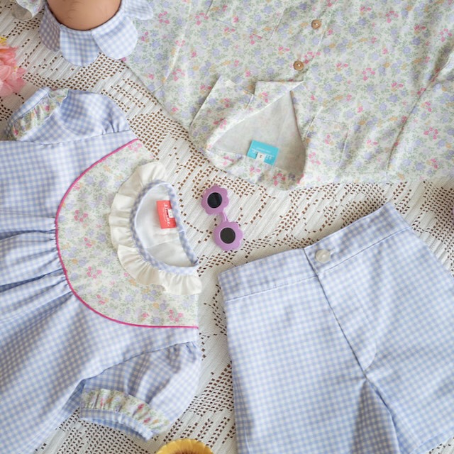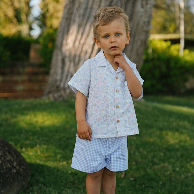Calções de rapaz aos quadradinhos lavanda e brancp que conjugam um estilo clássico com máximo conforto. De corte reto e elegante, são ideais para dias especiais ou para um look mais cuidado no dia a dia. Estes calções fazem conjunto com o vestido e fofo.