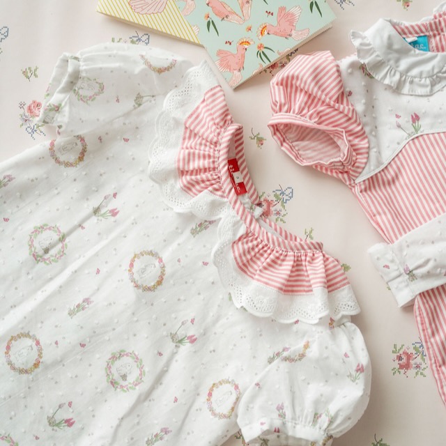 Destaca-se pela sua gola grande em riscas cor de rosa, rematada com bordado inglês, um detalhe especial que faz mesmo a diferença.