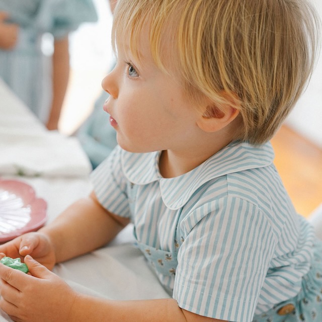 Um modelo prático e confortável, ideal para os mais pequenos, mantendo um ar “arranjadinho” sem perder liberdade de movimentos. Feito a pensar para dias de passeio, festas de verão e para criar memórias bonitas em família. E como adoramos conjuntos, esta linha tem outras peças a condizer para irmãos, primos ou amigos.