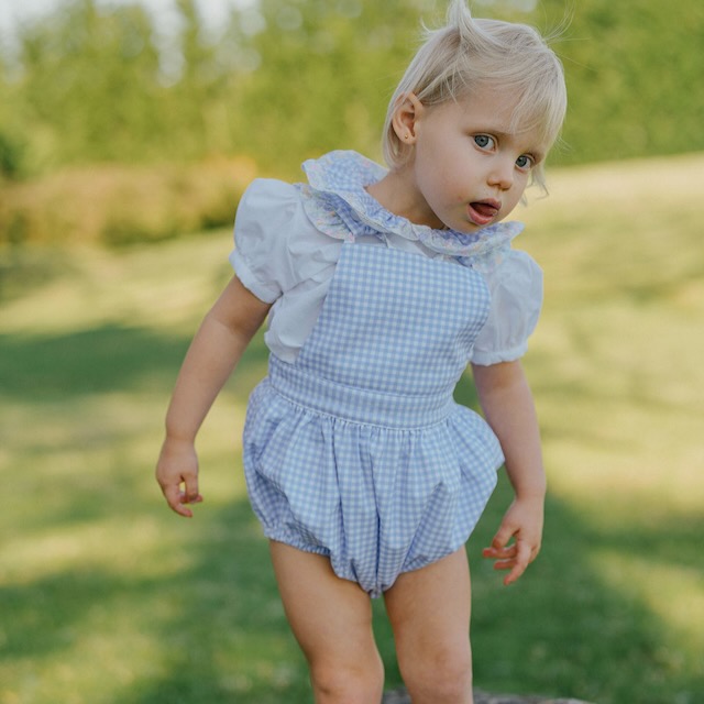 Um fofo em vichy lavanda cheio de encanto, pensado para os dias quentes de verão. O corte é leve e confortável, e os detalhes de flores nas alças dão-lhe um ar clássico e muito especial.