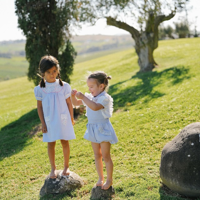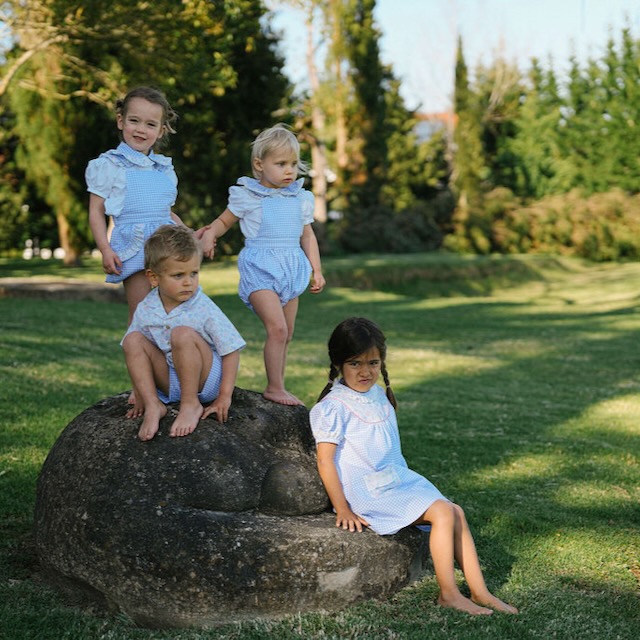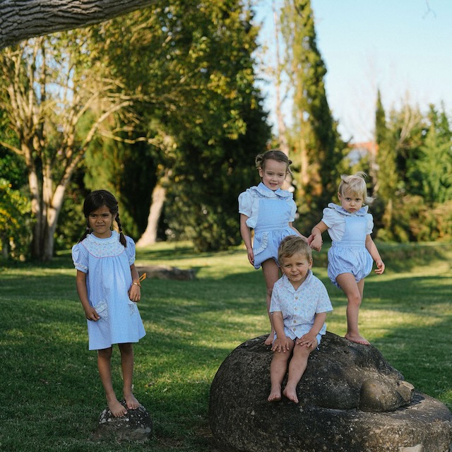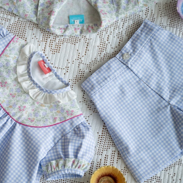 Os bolsos de flores e folho branco tornam esta peça ainda mais especial, criando um conjunto harmonioso e intemporal. Faz conjunto com mais peças da mesma linha, permitindo vestir de igual várias idades.